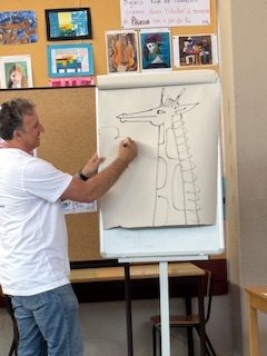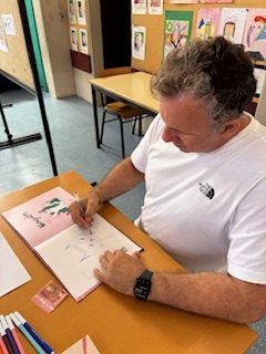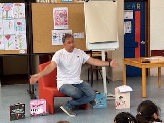 Durante a sessão, partilhou o seu percurso como autor e ilustrador, falou sobre os bastidores da criação dos seus livros e respondeu com simpatia e humor às perguntas feitas pelo público. Foi especialmente inspirador vê-lo incentivar a criatividade, mostrando como qualquer ideia — mesmo a mais simples — pode transformar-se numa grande história.