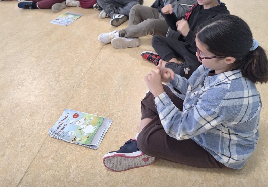 No âmbito do projeto da Biblioteca Escolar “Cruzada de Leituras“, os alunos da turma 2º ano A da EB1/JI do Carmo, deslocaram-se à Escola Gastão Cruz e leram a obra ” O Coelhinho Branco”, de António Torrado às turmas do 1º ano. O objetivo primordial destas atividades é desenvolver o gosto pelo livro, pela leitura e pela escrita, exercitar técnicas básicas de escuta ativa assim como de competências de interpretação e de compreensão do contexto. O livro surge como elemento agregador e essencial de todo o projeto, tendo os alunos o papel principal na realização de todas as ações definidas e na consecução dos objetivos previstos e, sobre uma mesma obra, “cruzar” as leituras de diferentes leitores.